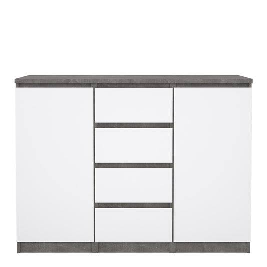 Naia Sideboard 4 Drawers 2 Doors in Concrete and White High Gloss